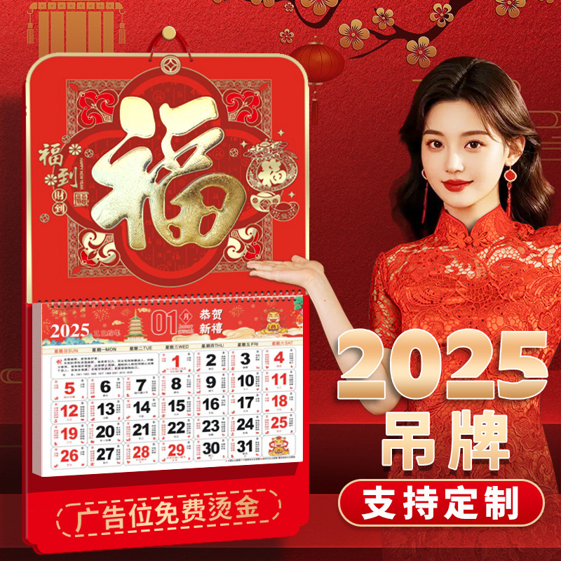 DL2025 新黄曆祝福タグ壁掛けカレンダークリエイティブ中国の赤いヘビ年広告手で切れるダブルカレンダーカスタマイズ
