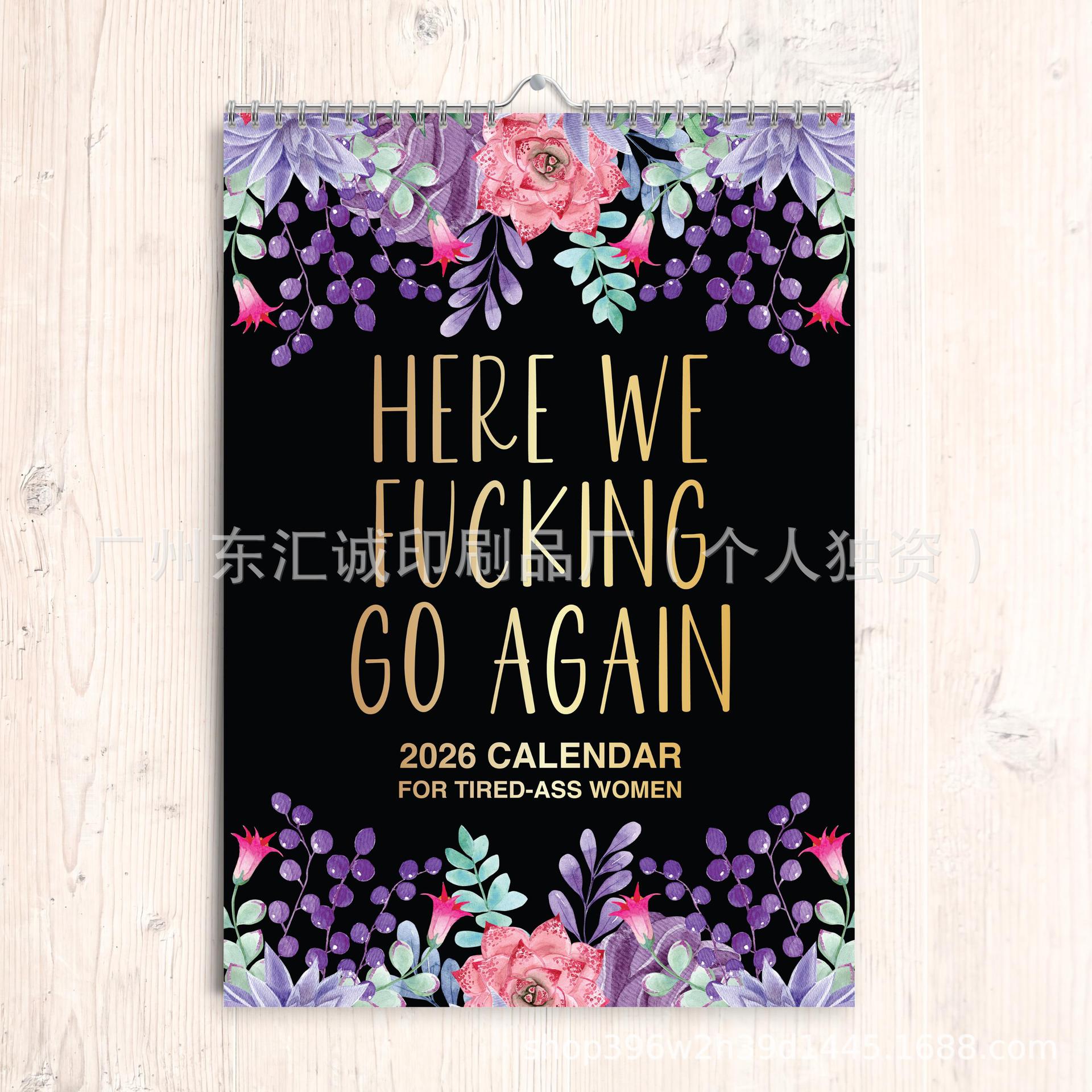 2026 Funny Swear Here We F Go Again 2026 女性用皮肉な壁掛けカレンダー