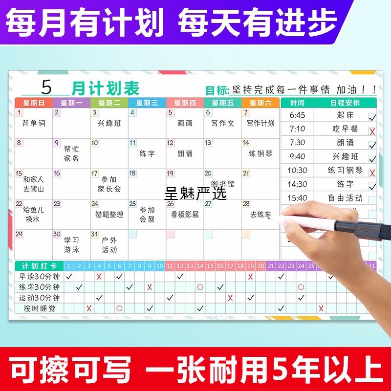 月間スケジュール、目標計画、時間割、スケジュール、毎日、毎週、学習チェックイン、自己規律表、ウォールステッカー