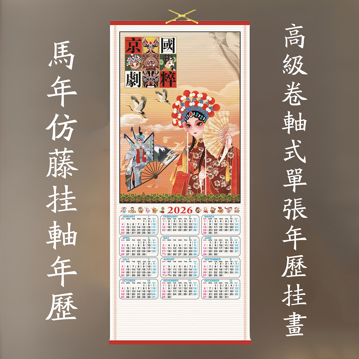 2026 紙籐壁掛けカレンダー馬年カレンダーシート模造籐壁掛け英語カレンダーロシアカレンダー外国貿易干支壁掛け絵画