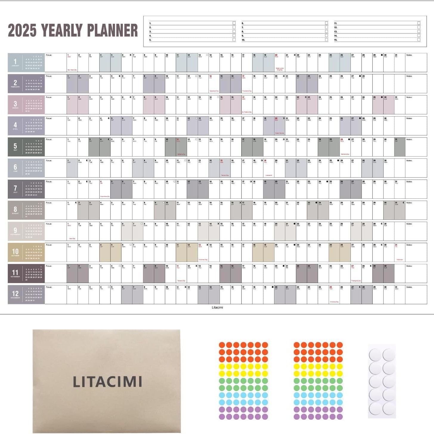2025 新しい壁掛けカレンダークリエイティブシンプルな壁掛け大型グリッドホーム大晦日ノート 2024 チェックインプランナー