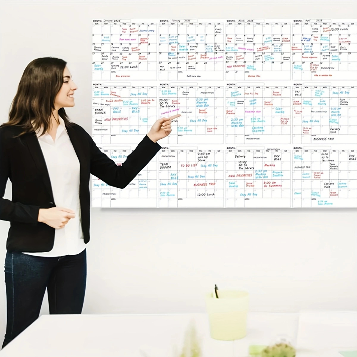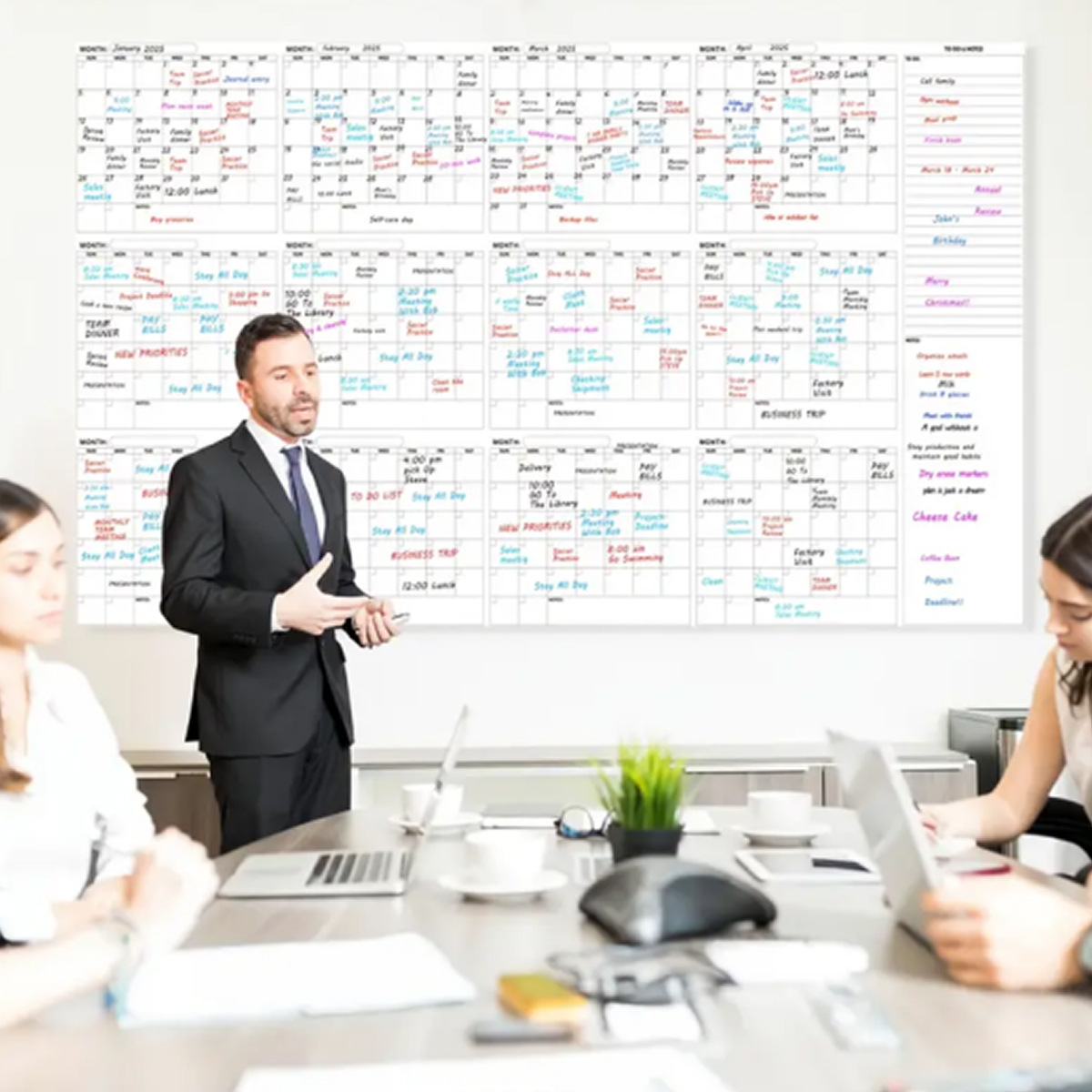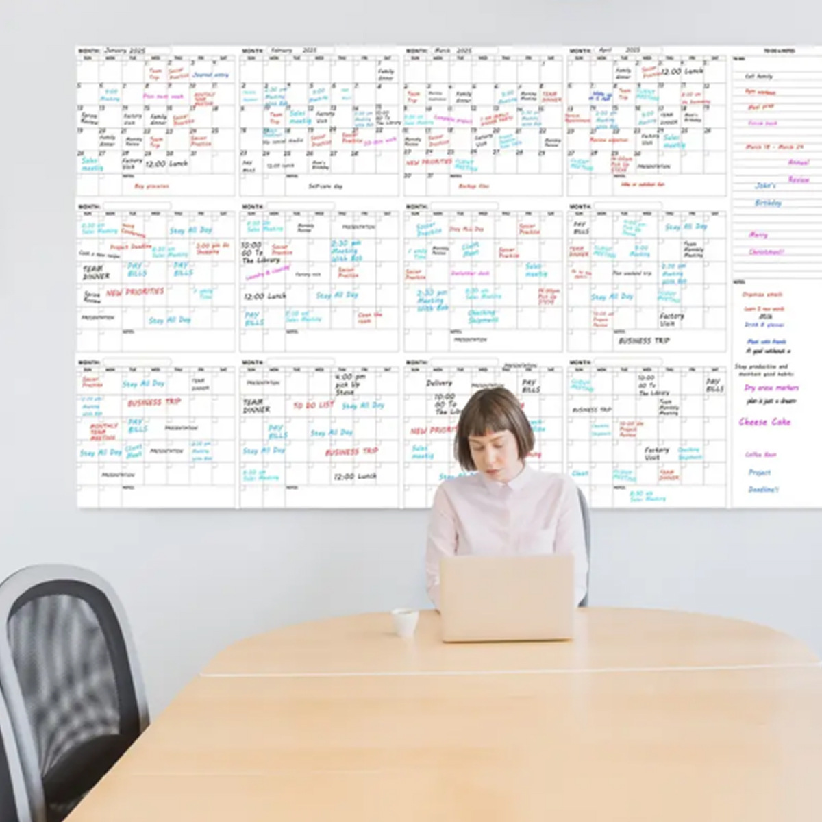 カスタマイズされた日付なし年間壁掛けカレンダー ホワイトボード 94 x 147 cm 12 か月消去可能再利用可能