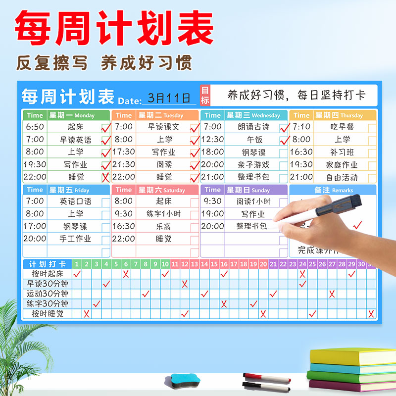 ウィークリープランナーウォールステッカー冷蔵庫ステッカーメッセージボード学習チェックインプラン子供の時間割自己規律チャート磁気