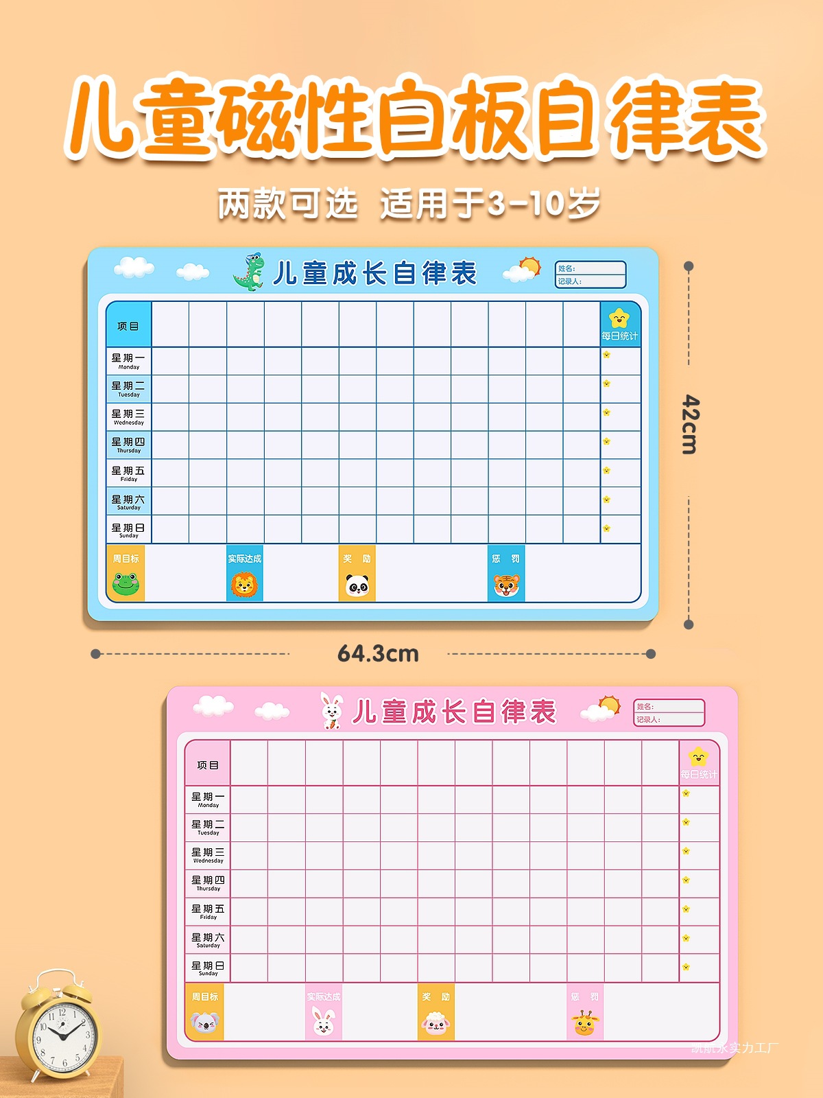 学習スケジュール ウォールステッカー 消せる子供の良い習慣 自己規律チェックイン表 磁気冷蔵庫ステッカー 学習スケジュール