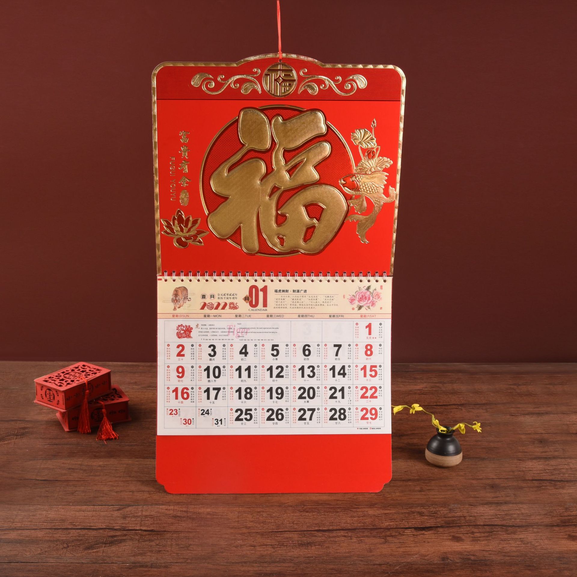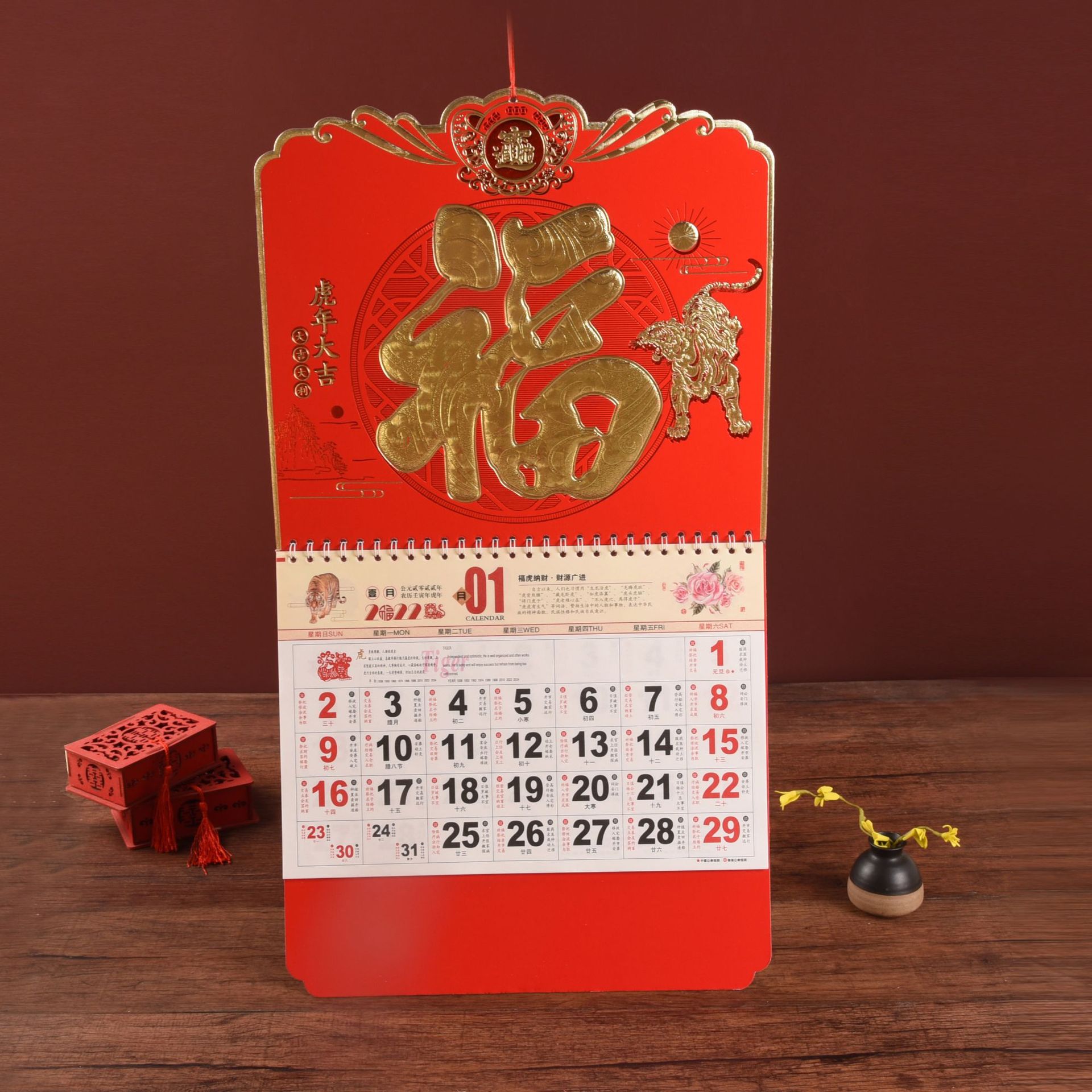 2025 福字壁掛けカレンダー会社ギフト手破れカレンダー大型永久カレンダークリエイティブ金箔ホーム壁掛け中国