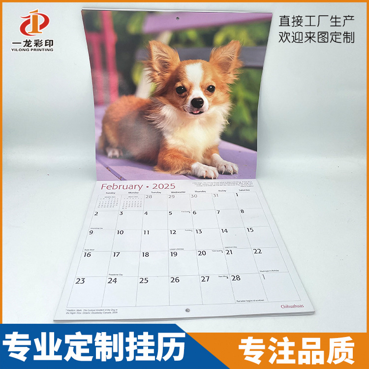 クロスボーダーカレンダーカスタマイズ 2026 バインディング犬テーマカレンダーフルカラー印刷パンチカレンダー