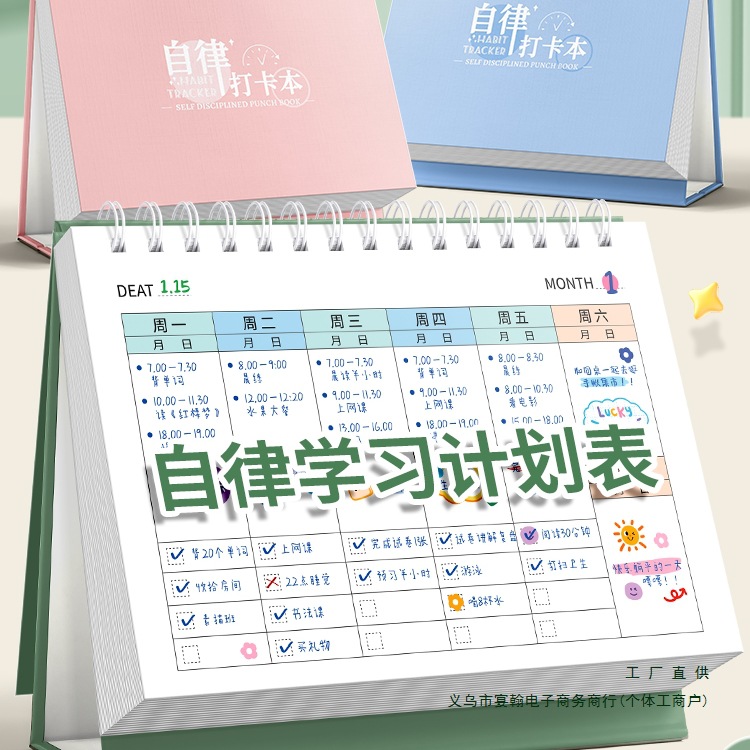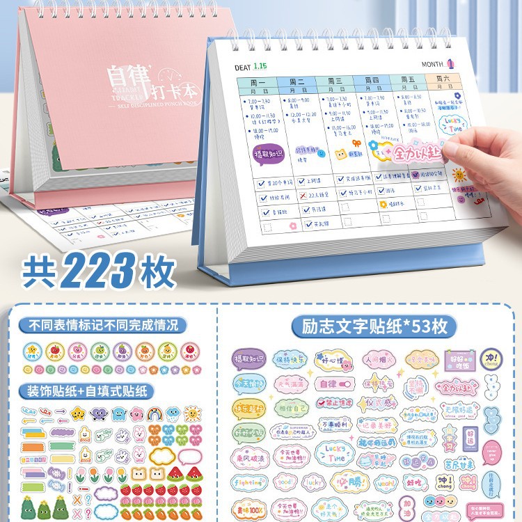 小学生向けの自己規律学習スケジュール、チェックインブック、カレンダー、卓上カレンダー、新しい子供用ステッカー、ポイント、毎日