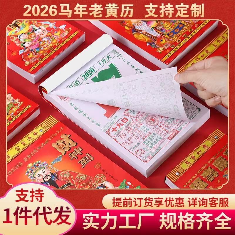 2026年黄曆 手切り式旧式黄曆365日黄曆旧式カレンダー吉日運勢新年壁掛けカレンダー工場直販