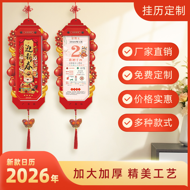 2026 メーカー馬年壁掛けカレンダー祝福タグ月間カレンダークリエイティブ卓上カレンダー広告印刷正六開中国赤祝福タグ