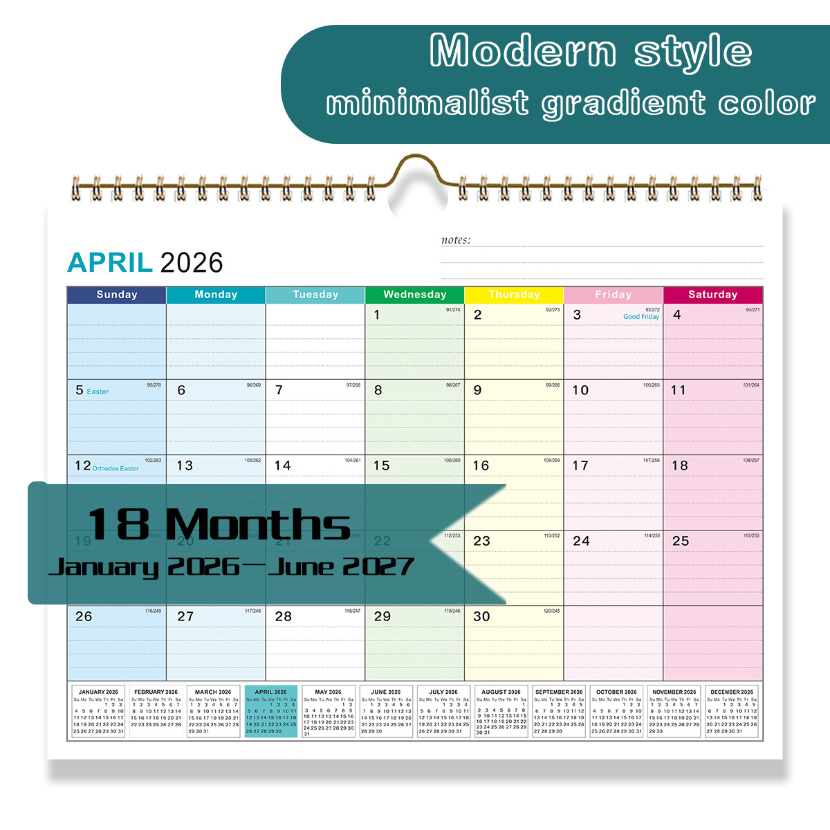 クロスボーダー 2026-2027 英語壁掛けカレンダー グラデーションカラー ヨーロピアンスタイル YO サークル壁掛けカレンダー 18 ヶ月ラベル可能