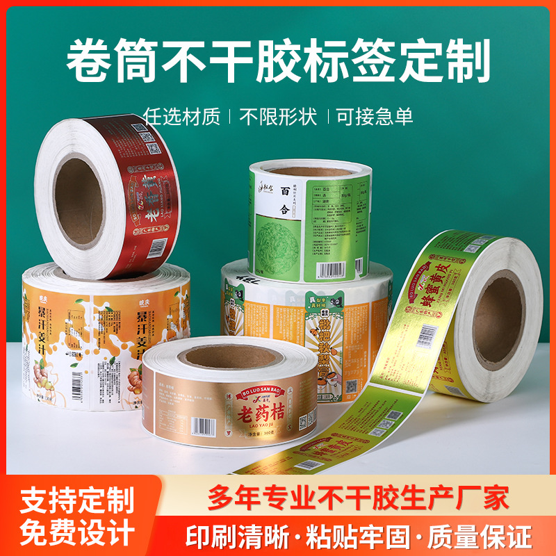 粘着ラベルリールラベルシール粘着ミネラルウォーター貼りビール貼り白酒貼りカスタム