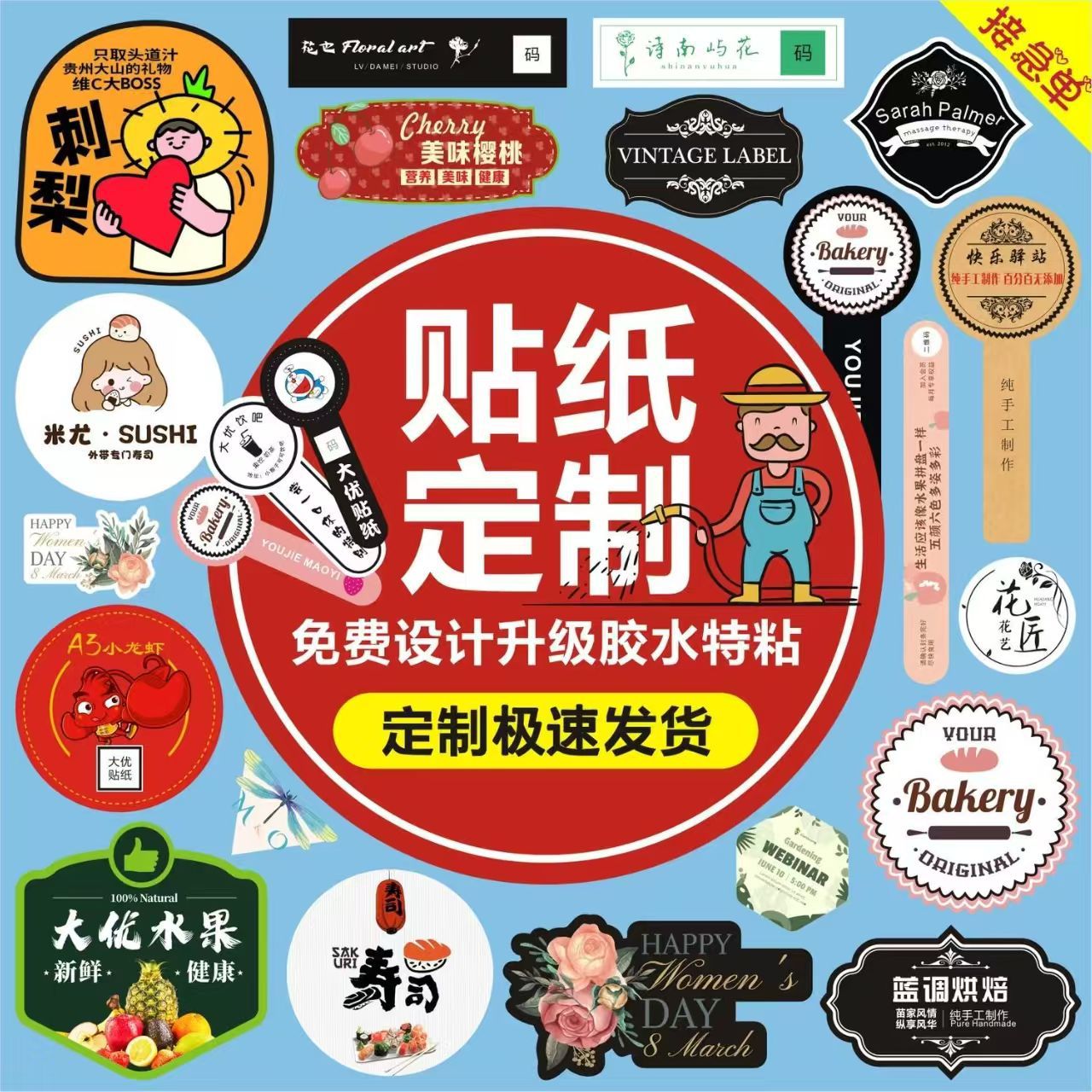 粘着シールカスタムロゴラベルオーダー広告商標二次元コード果物ミルクティーシール印刷