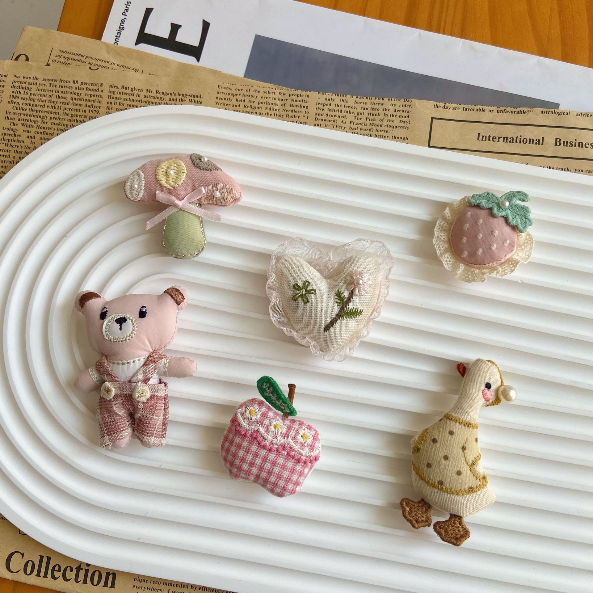 韓国森系布芸漫画アクセサリーエプロンウサギ熊公仔ブローチ頭飾り服DIYアクセサリー人形