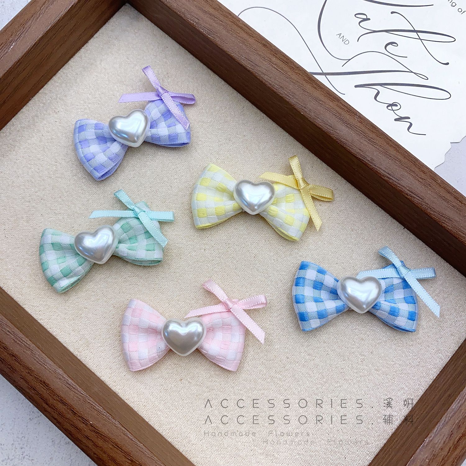 DIYの格子の蝶結びの半製品の髪飾りの人形のキーホルダーはペットの服の靴下の補助材料の靴の花を掛けます。