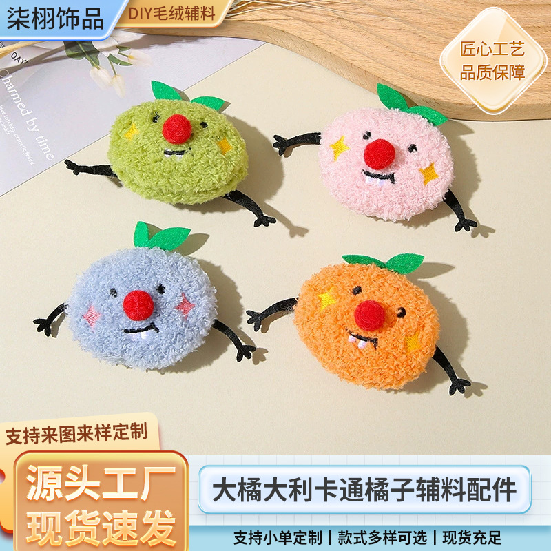 漫画のかわいい女の子のオレンジ色のブローチ、大きなオレンジ色のイタリア製アクセサリー、カップルや親友のバッグ、服、人形、アクセサリー、小物