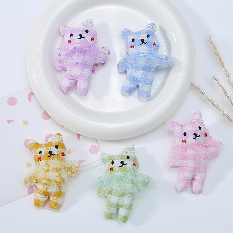 萌え趣味ins真珠レース熊充綿パイル部品格子熊包キーホルダーDIY半製品補助材料