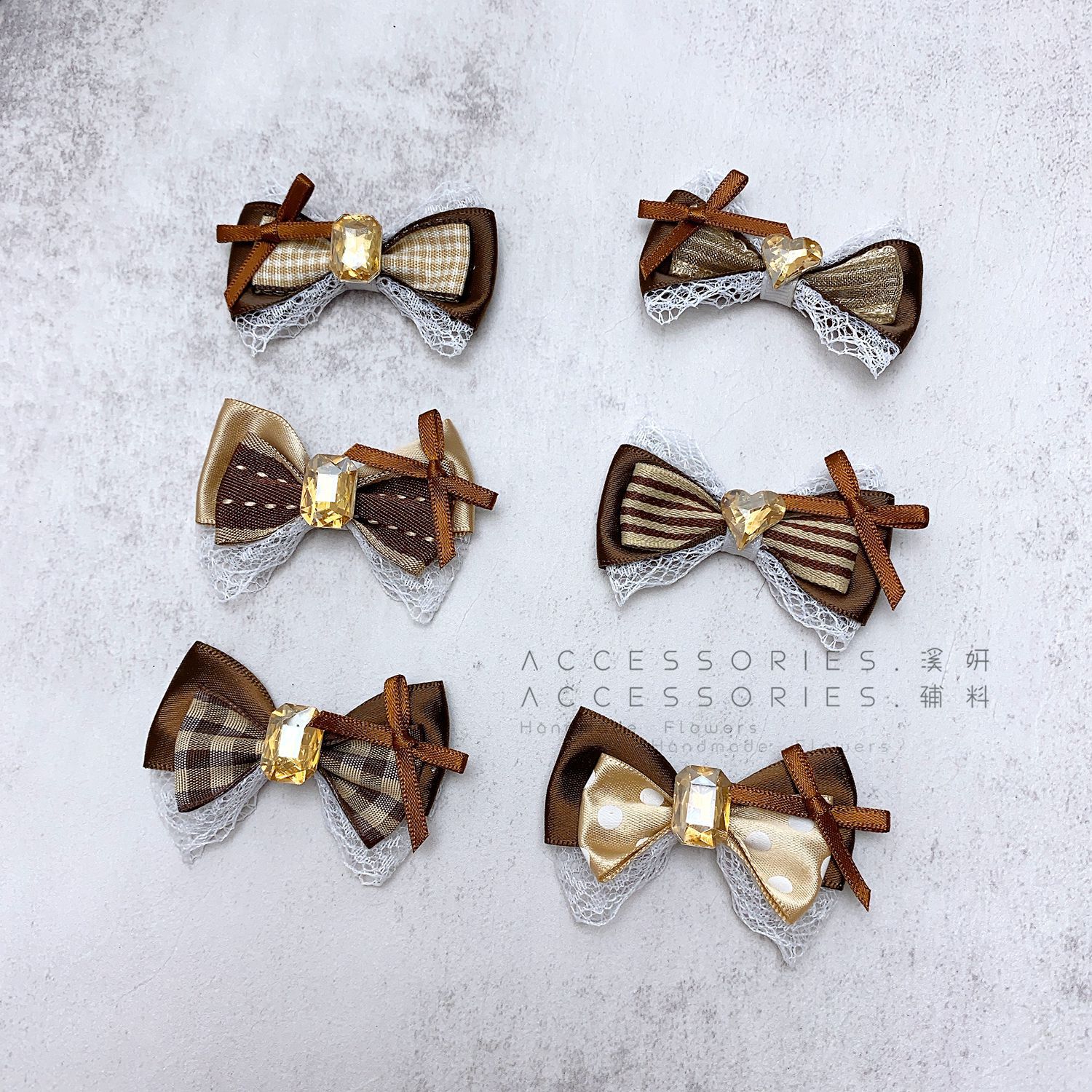 秋冬の乳のカレー色の手作りの蝶結びの半製品のペットのヘアピンの人形の服の携帯電話の携帯電話の部品の補助材料