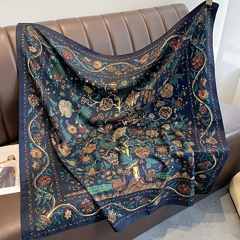 70シルクタオルの高級感韓系ファッション百合職業シミュレーションシルクタオルのレトロなプリントシルクタオルの女性