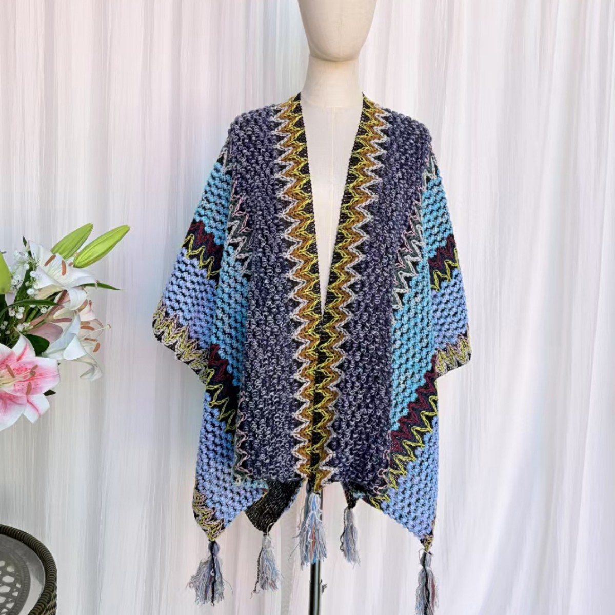 雲南麗江観光は新疆チベット川西異域マント民族風マントのマフラーを着ています。
