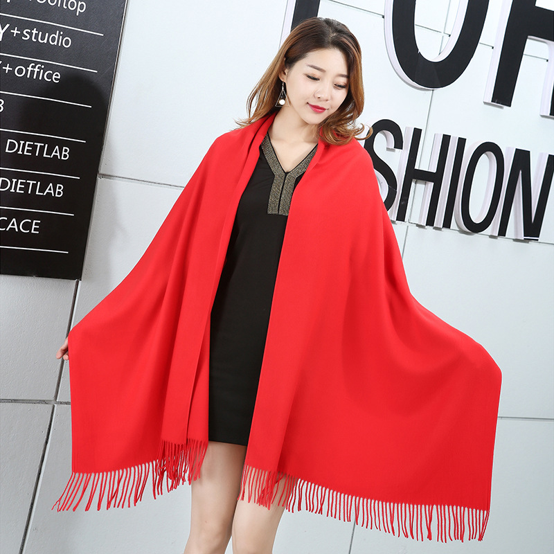 カシミヤのマフラーの女性の春と秋の冬の新型の厚い保温のマントの学生の純色のフリンジのマフラーの280gのメーカーをまねます。