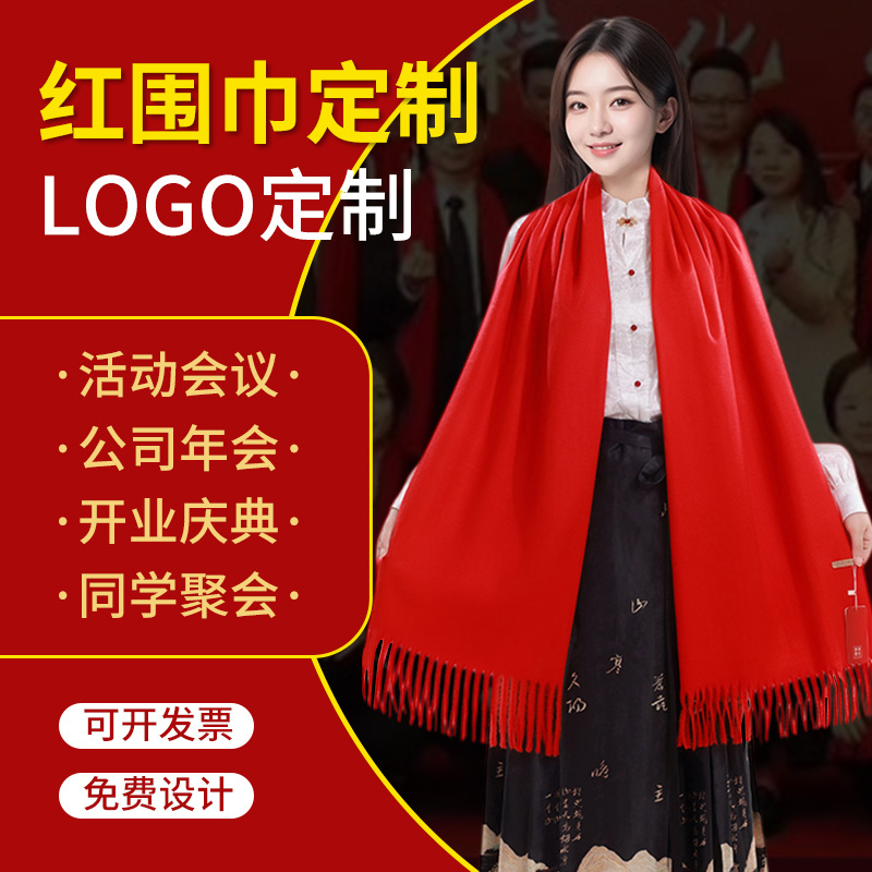赤いスカーフ、カスタマイズされたロゴプリントと刺繍入りの赤いスカーフ、ビジネス会議、オープニングセレモニー、年次総会イベント用の赤いスカーフ