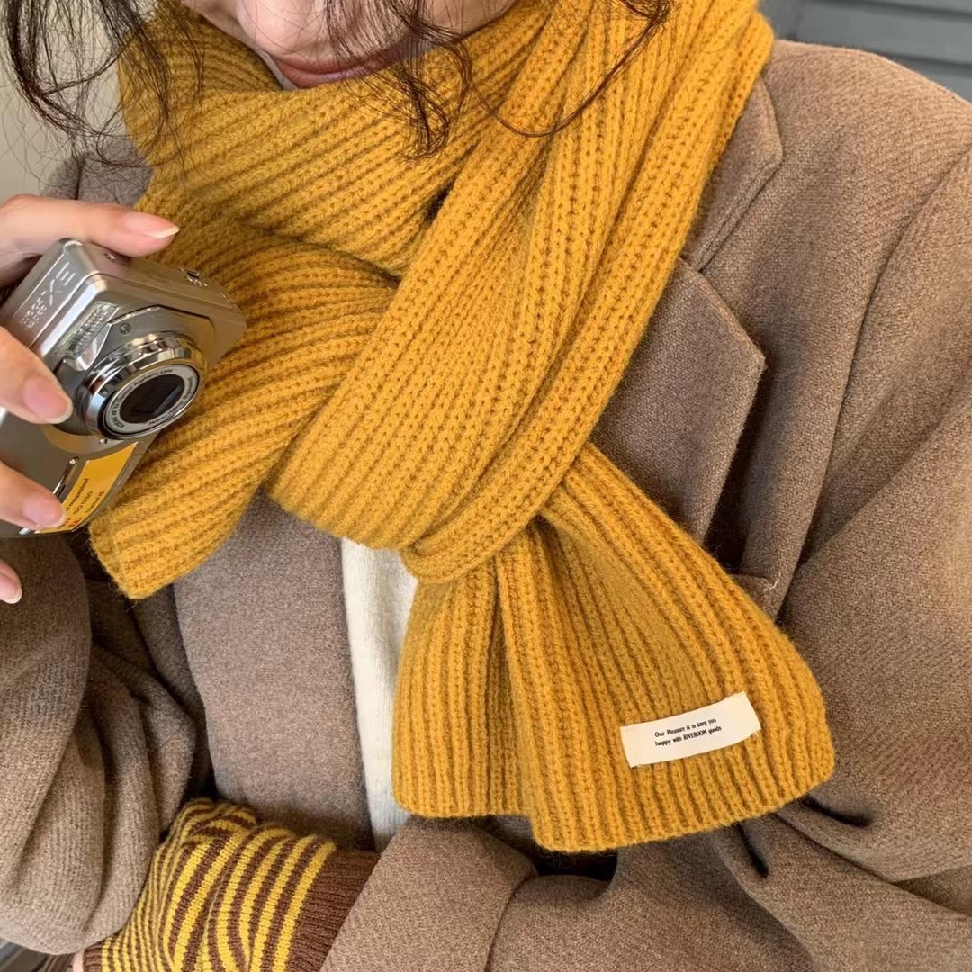 韓国版インブロガーニッチシンプルで多用途なラベル付きスカーフ女性用秋と冬暖かい学生無地スカーフカップル