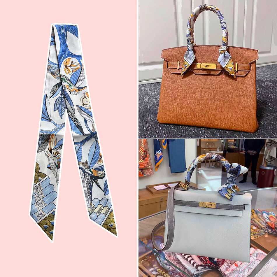 ハンドルを改造して破損したハンドバッグのシルクタオルの女性2024の新しいリボンの長いスカーフのリボンのリボン
