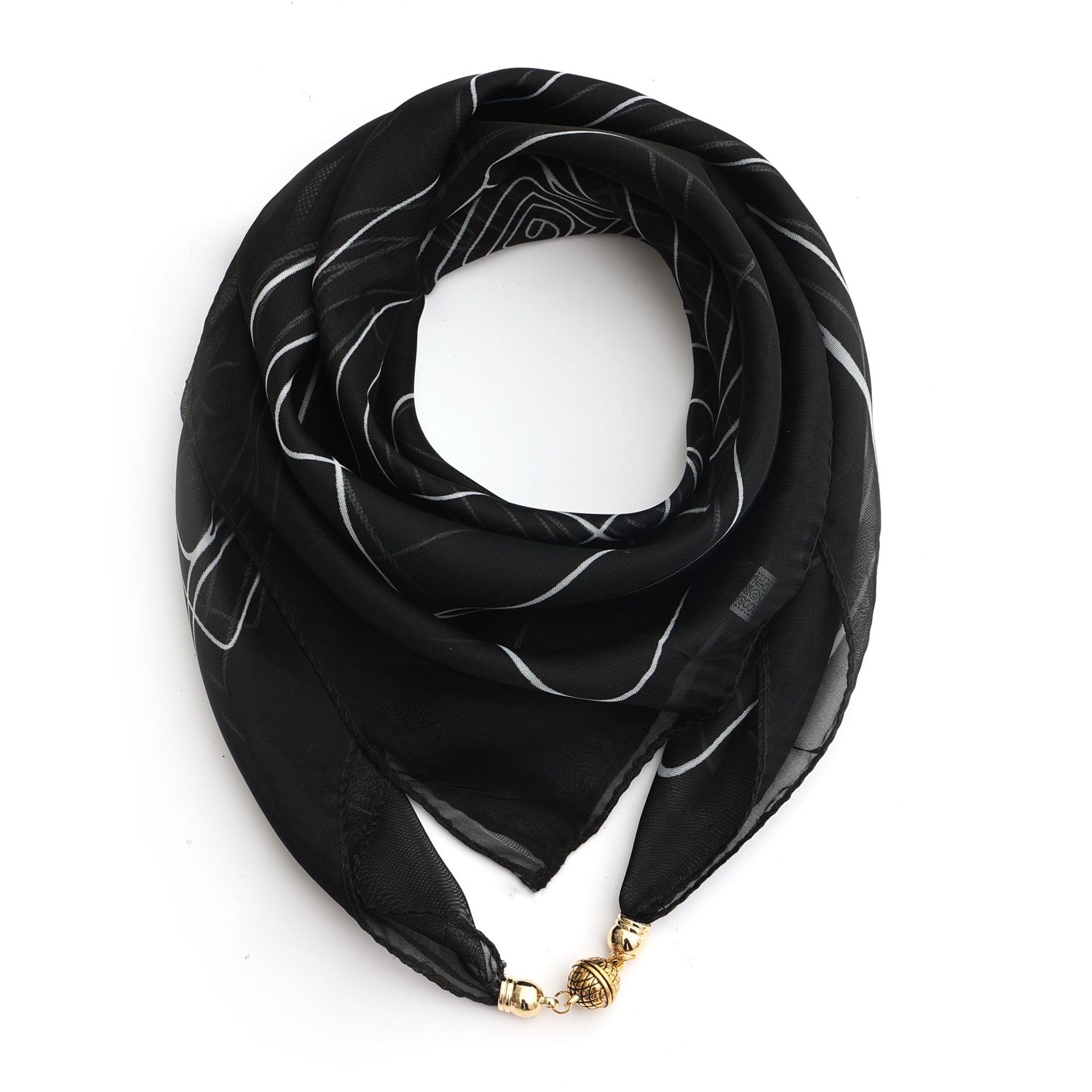 新しい5ピーススカーフバックル、ガーゼスカーフバックル、ガラスパールビーズ針、オールブラック磁気バックル、多機能スカーフアクセサリー、スカーフ