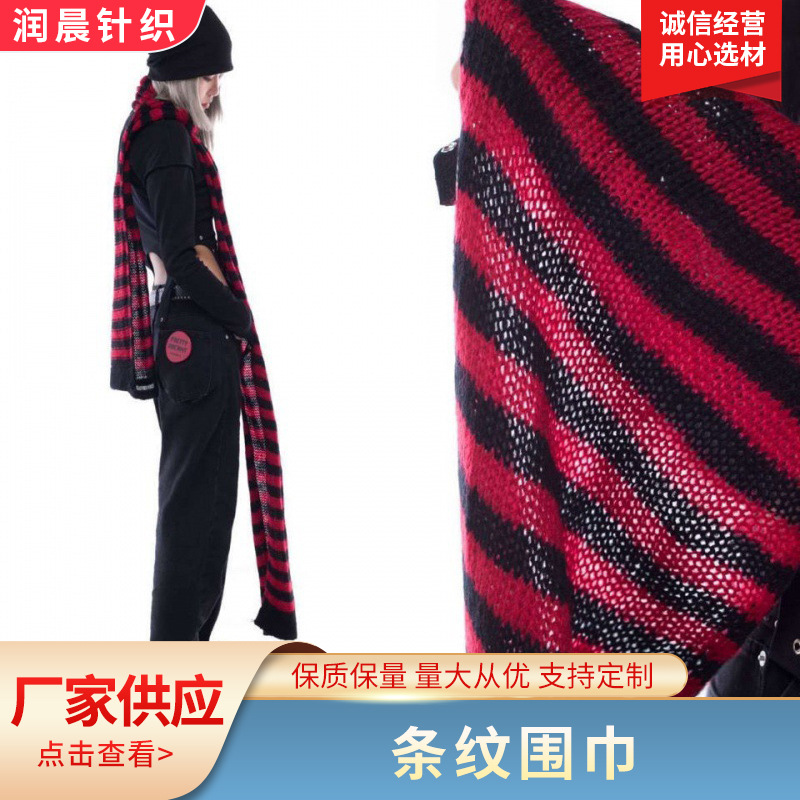 黒赤黒灰縞マフラーパンクは柔らかいモチとした快適な垂れ下がったニット毛糸秋冬国境を越えた亜文化である