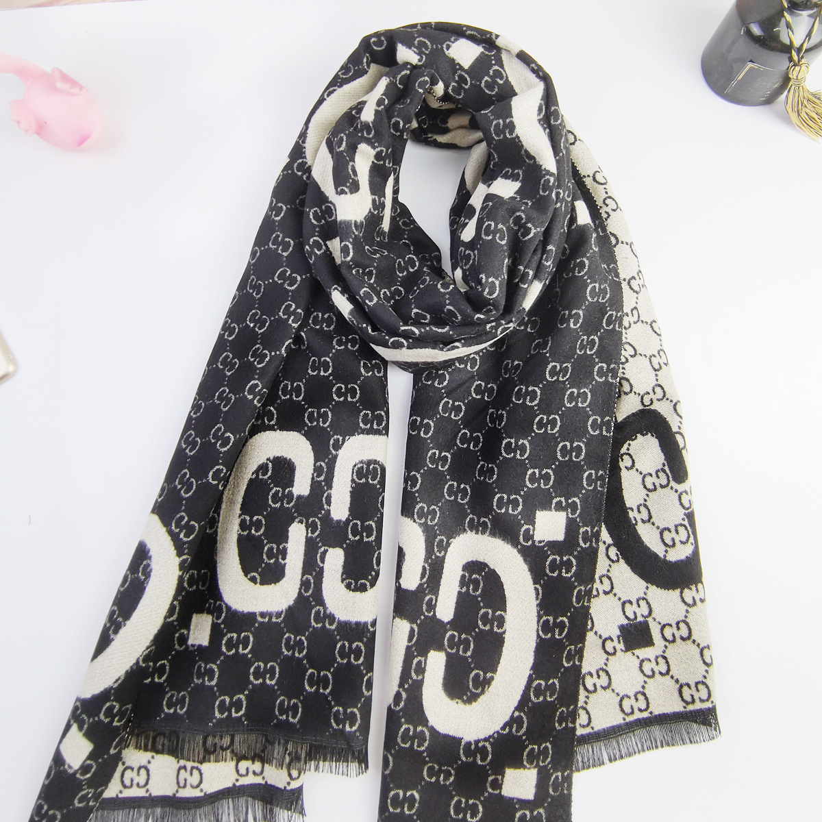 ネット赤爆金両面文字cマフラー女性冬の新型欧米ブランドのカシミヤエアコンストール保温春秋