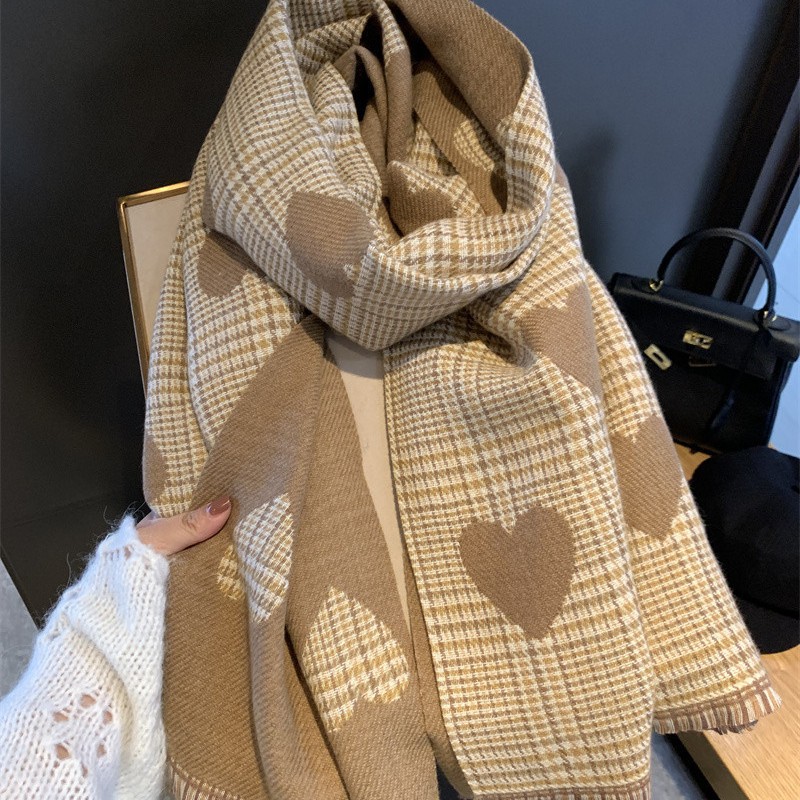 秋冬のネットの赤いタイプの両面は色の愛の格子のマフラーの女子学生をつづり合わせます。