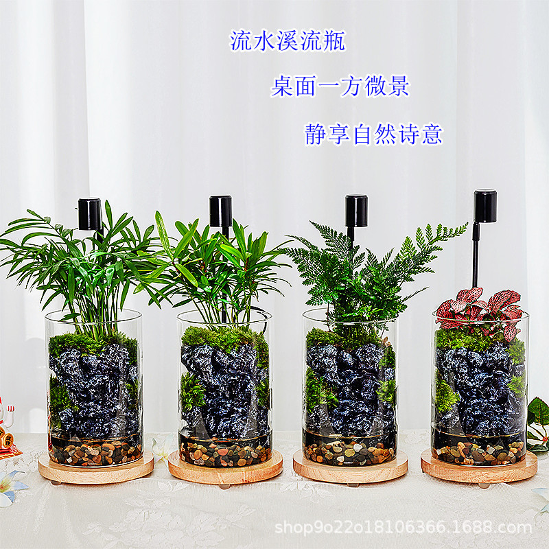 流水卓上盆栽、小川ボトル、生態ボトル、苔マイクロ風景装飾品、鉢植え造園、緑植物、水槽、手土産