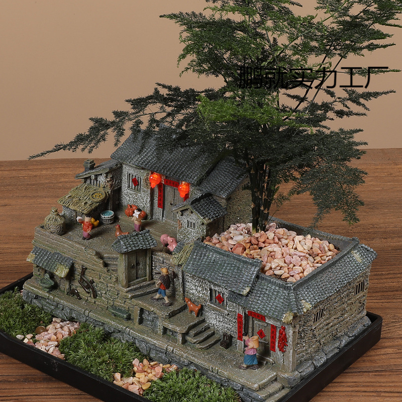 苔マイクロ風景古い家モデル農家庭園植木鉢デスクトップ鉢植え多肉植物盆栽装飾品