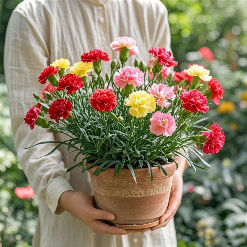 カーネーションの鉢植え花苗、つぼみ付き屋内庭園、育てやすい、四季咲きの多年生バルコニー花植物