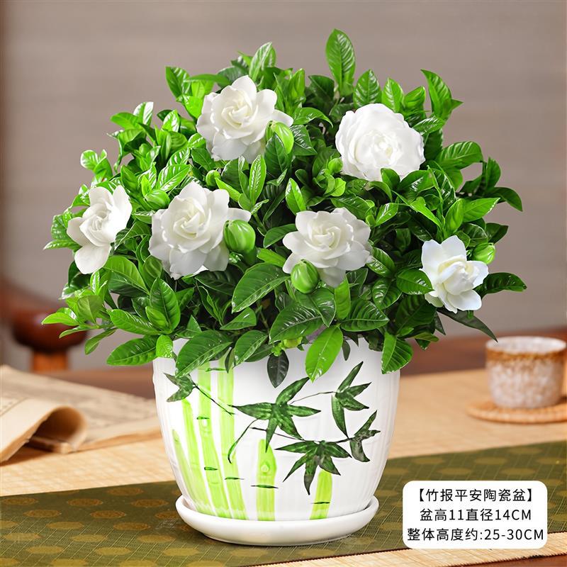 一茎ロリポップクチナシ鉢植え、つぼみ付き大葉、老根クチナシの枝、牡丹、四季咲きの花植物