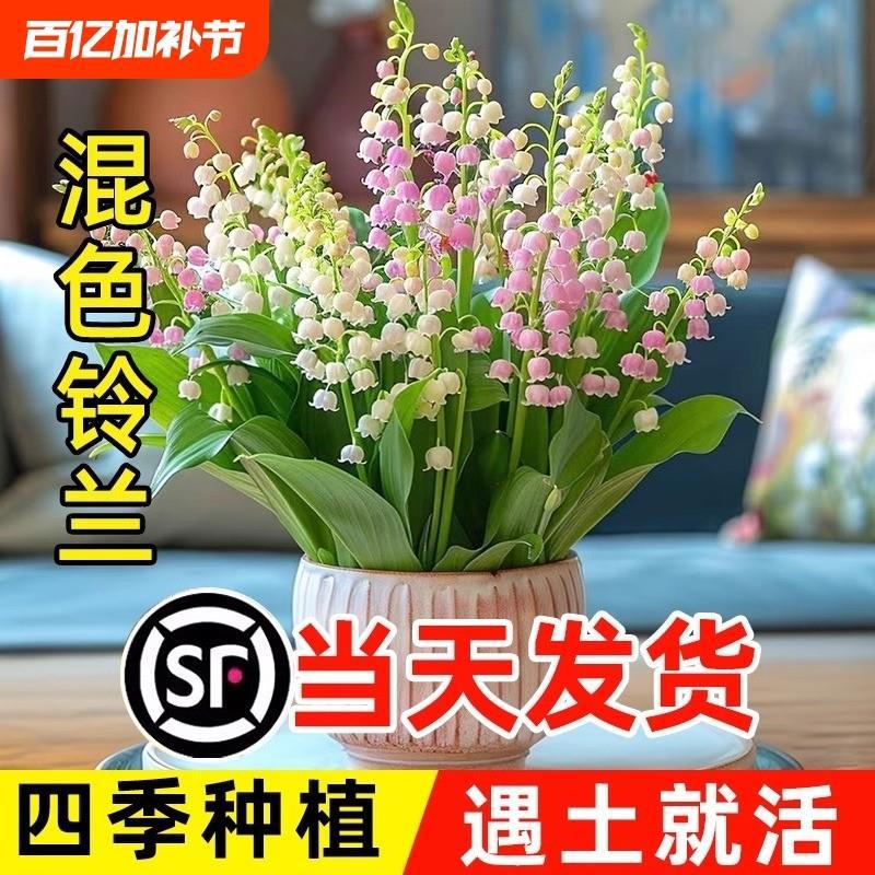 混合色のスズランの苗、芽と根付きの鉢植えの緑の植物の球根、屋内外の香水栽培の花、四季咲き