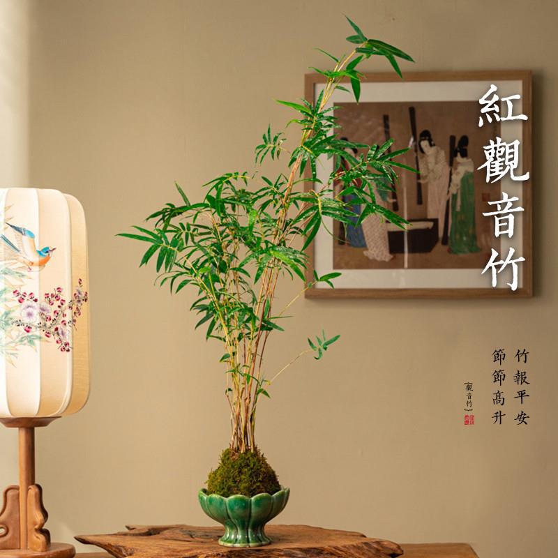 赤竹 赤観音竹苔玉 苔玉 水耕栽培 米竹 室内植物 鉢植え デスクトップ盆栽 リビングルーム 緑の植物