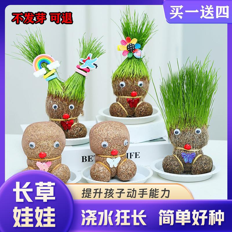 頭に草が生える人形、緑の植物、デスクトップ水耕栽培、子供に適した草植物、幼稚園の鉢植えの小さな装飾品