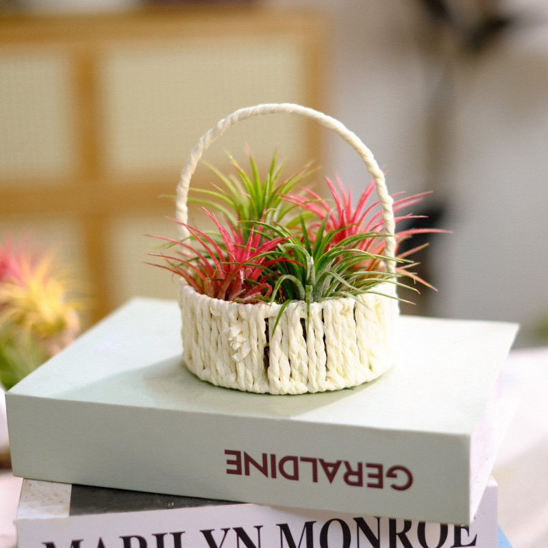 エアパイナップルホワイトバスケット組み合わせ、土なし水耕栽培の緑の植物、家庭用の新鮮な植物、アマゾン工場直販