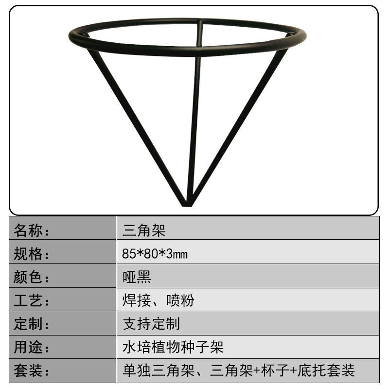 クロスボーダー水培植物種子固定器黒防錆ピラミッドセットと花瓶ベース三脚
