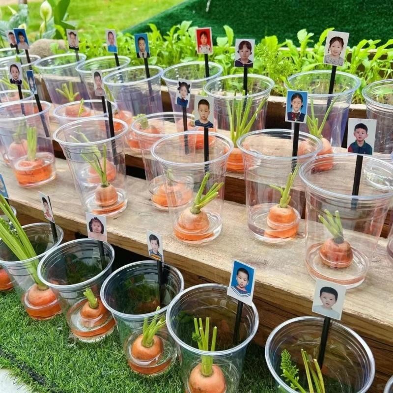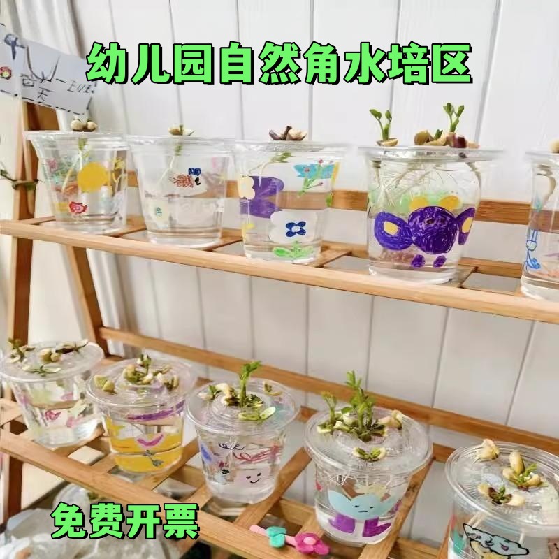 幼稚園春の自然コーナーのテーマ活動水耕栽培カップ植物コーナーシードケア観察透明カップ