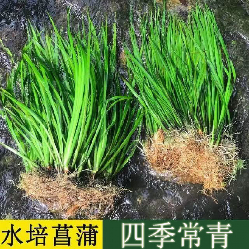 水耕栽培の石菖蒲、水生盆栽、魚とカメの水槽、造園、水草、花と草、フィルター鉢植え、心を落ち着かせる緑の植物、四季常緑