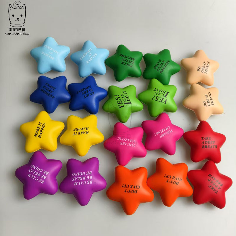 国境を越えた人気のカラフルな5cmの丸い五芒星ストレスボール、小さな星の減圧PUボール、スマイリーフェイスロゴ付き