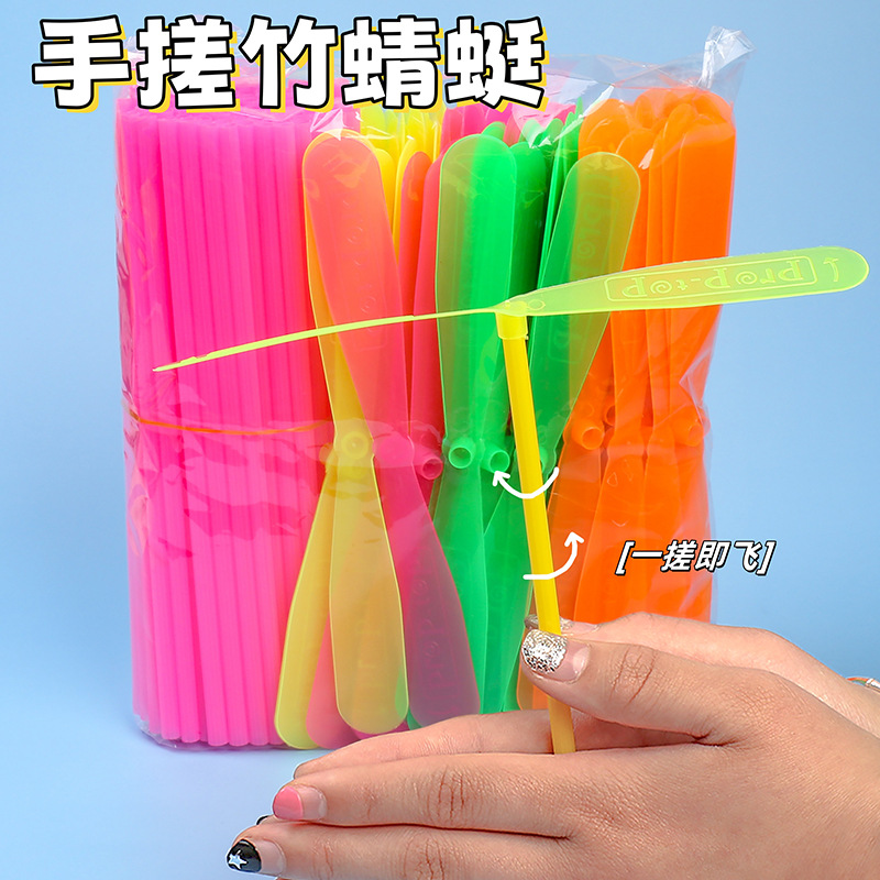 手でこねる竹製トンボ、プラスチック製二重羽根の飛天仙子、子供向け懐かしの定番おもちゃ、屋外の屋台の贈り物、飛行玩具