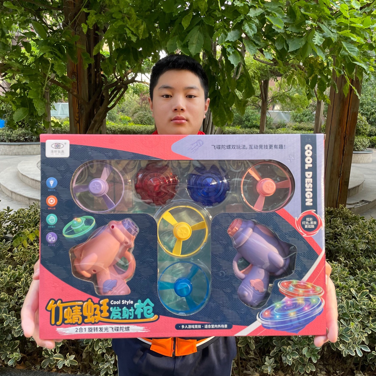 竹蜻蜓发射枪40公分手提礼盒竹蜻蜓陀螺套装玩具机构活动礼品玩具