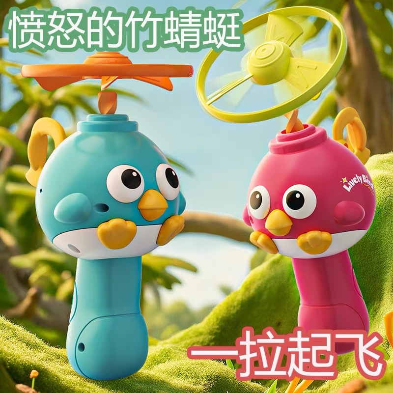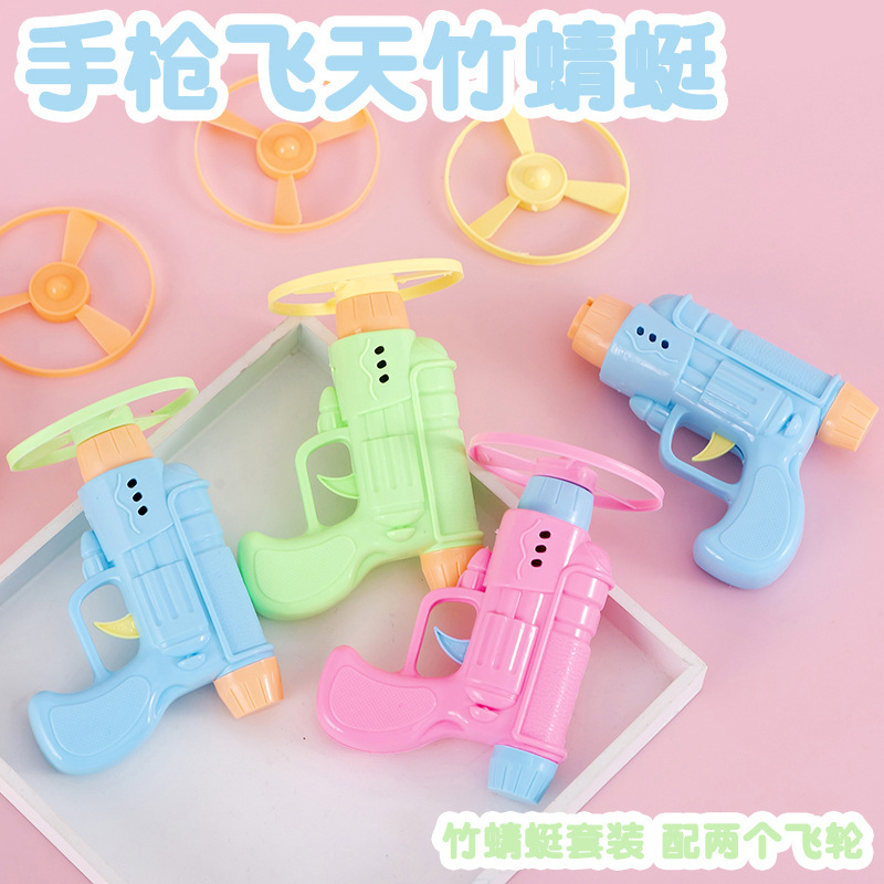 子供用竹トンボおもちゃ手引き空飛ぶ円盤ハンドヘルド弾丸発射銃回転飛行機屋外親子インタラクション