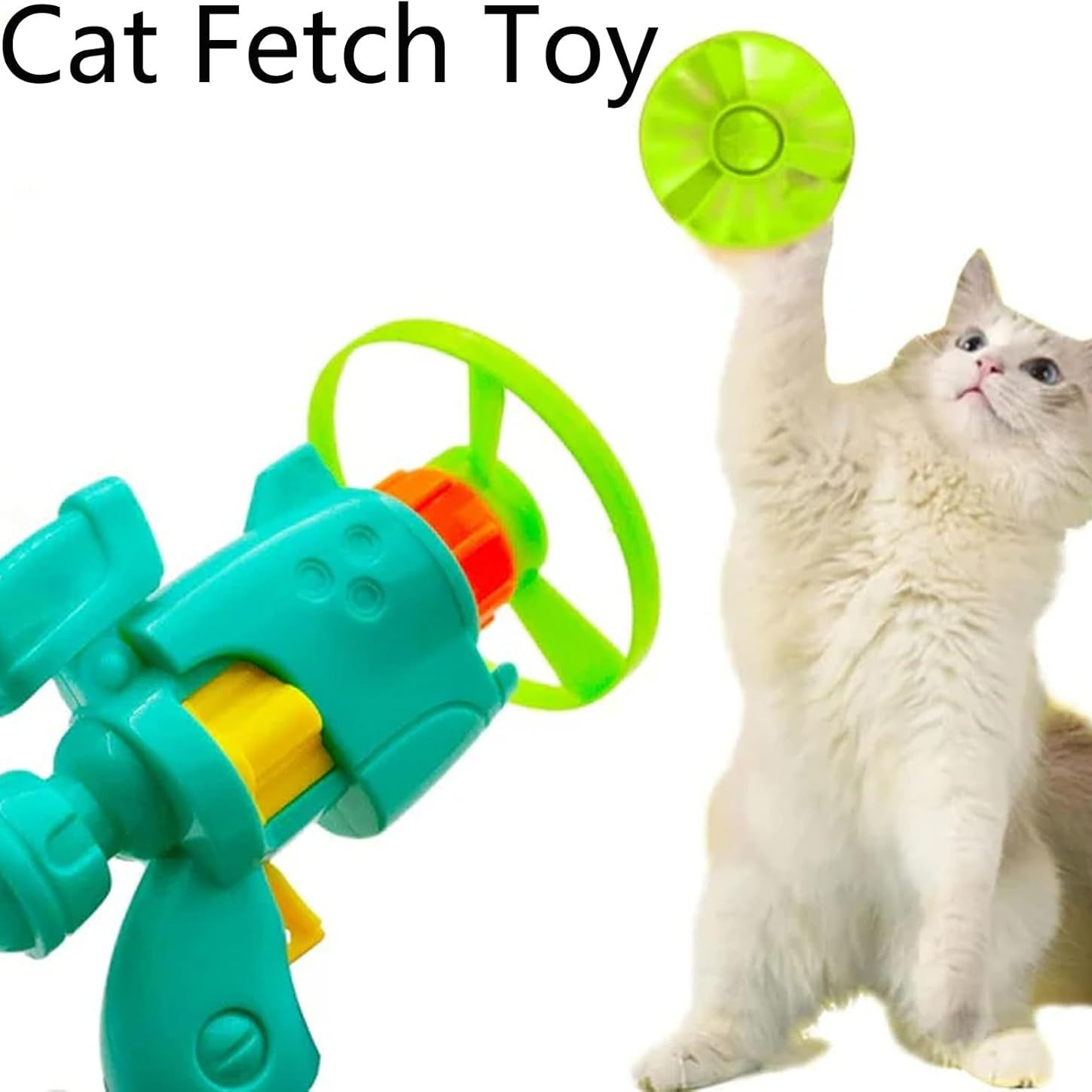 国境を越えた人気の発光フリスビー猫ランチャーセット、飛行プロペラ猫遊び追跡インタラクティブおもちゃ付き