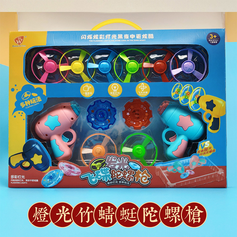 クロスボーダー専用飛天ジャイロガン屋外発光弾射回転ufo子供は竹トンボのおもちゃを持って卸売りします。