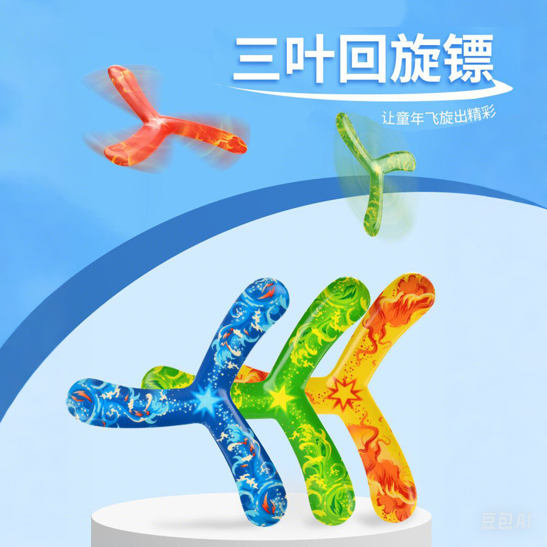 クロスボーダー21.5cm子供用スポーツ安全PUフルカラー発泡ソフトアウトドア三叶ブーメラン手投げ玩具卸売