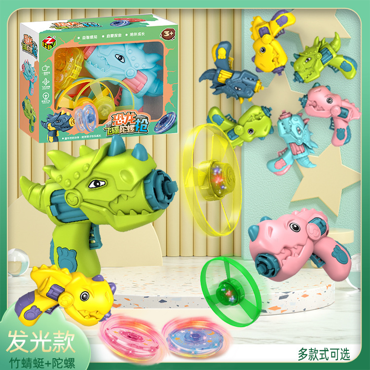 Ufoジャイロ両用恐竜銃子供知育玩具屋外発光回転飛盤竹トンボ発射ピストル